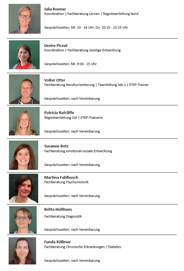 angeboten sowie - in Kooperation mit weiteren Unterstützungssystemen und Förderschulen - auch in allen weiteren sonderpädagogische Förderschwerpunkten (Hören, Sehen, kranke Schülerinnen und Schüler, körperlich-motorische Entwicklung) umfangreiche Beratungs- und Fördermaßnahmen verwirklicht.